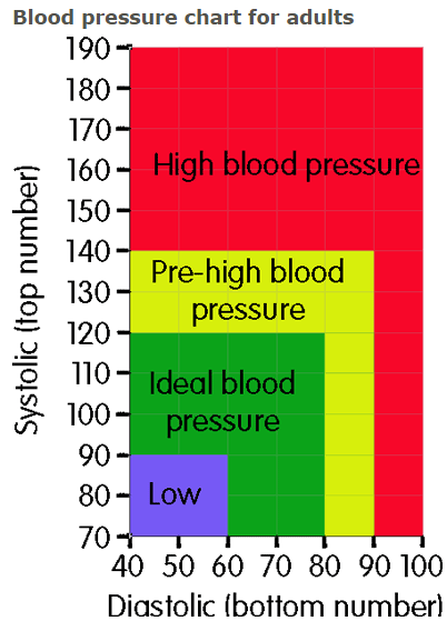 After getting to know "what can high blood pressure cause", you may want to diagnose whether you have high blood pressure or not. Blood pressure readings are given in two numbers: the systolic and the diastolic. The systolic number is the highest pressure when the heart beats to push blood through the blood vessels. The diastolic is the lowest number when your heart rests between beats. To use this blood pressure chart, find your systolic number on the side of the chart and the diastolic on the bottom, and draw a line. Where the lines intersect is the range in which your blood pressure falls.